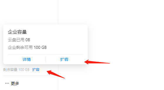 但是企业/组织云盘是可以扩容的,如图所示我们点击【扩容】按钮。