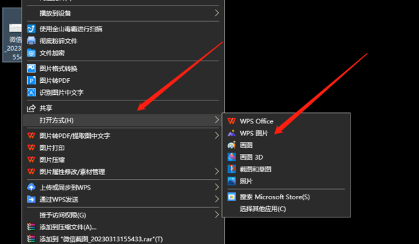 1、右键单击需要识别的图片,选择打开方式为【WPS图片】中打开;