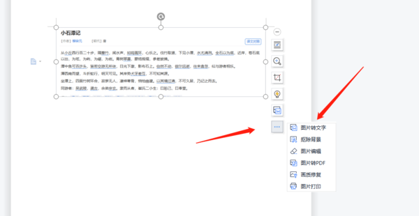 3、插入图片后,单击图片,点击如图所示的三个点,【图片转文字】按钮;