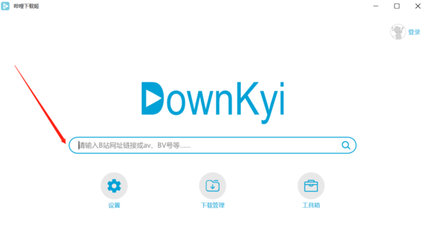 3、打开DownKyi,将BV号粘贴到中央的搜索栏中后,敲击键盘回车键或点击放大镜搜索按钮。