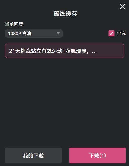 2、在弹出的缓存下载界面中,我们可以调整缓存的视频画质,之后点击【下载】。