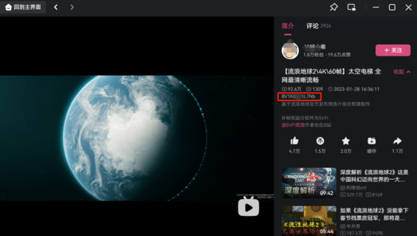 2、在哔哩哔哩平台的视频作品中都有自己独一无二的BV号,我们打开要下载的视频界面,在右上方找到该视频的BV号并全部复制。