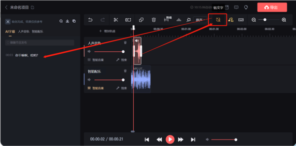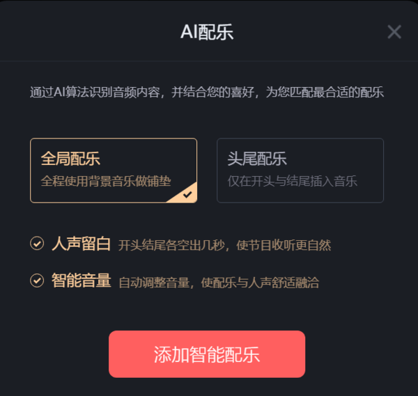 喜马拉雅云剪辑有两个AI智能功能,分别是【转文字】和【智能配乐】。