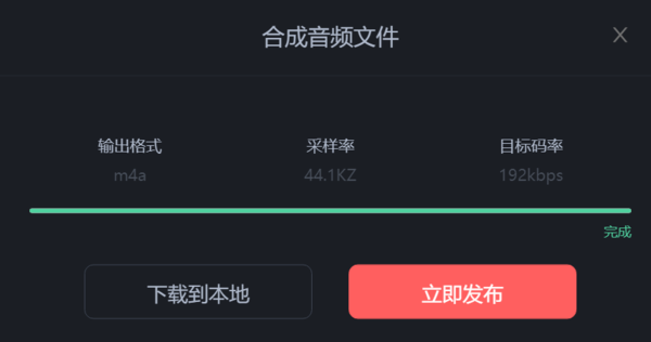 最后,用户可将剪辑完成的音频文件导出到本地或是直接发布到喜马拉雅个人平台上。