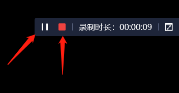 我们点击【REC】按钮开始录制,开始录制后,会弹出一个很小的条形窗口录制管理器,我们点击【暂停】图标按钮即可,再次点击即可继续录制,点击红色按钮即可结束录制,素材会自动保存在库中。