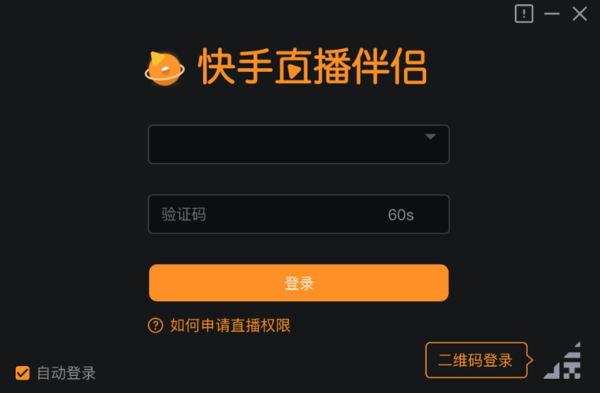 1.首先要确定的是你已经拥有快手账号,并绑定了个人的手机号,最为重要的是必须得获得了快手的直播权限,快手直播伴侣安装上之后,自动弹出登录弹窗,手机验证码登录方式,输入个人所绑定的快手的手机号,获取验证码之后登录就可以了;