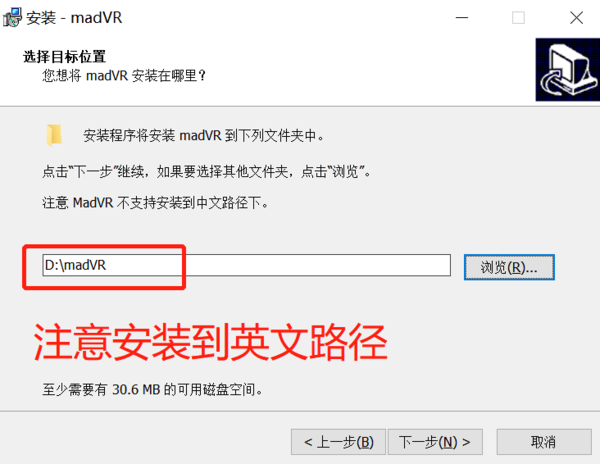 3、在安装madVR的过程中我们要注意安装到纯英文路径下,以防止安装失败。