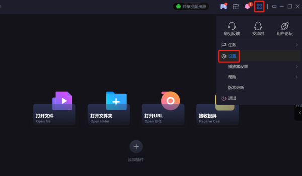 1、打开恒星播放器,点击右上方的【更多】菜单栏——【设置】。