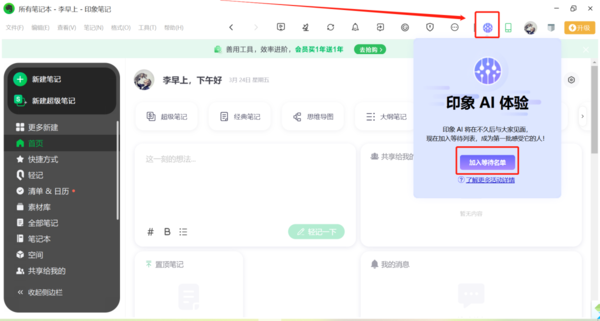 印象笔记的印象AI测试体验报名已开启。终于,印象笔记宣传已久的印象AI功能,今天终于开放了内测体验报名,不少小伙伴估计已经蓄势待发,想要立马体验一波搭载ChatGPT的印象笔记的独特魅力。别急,小编这就为大家分享如何在报名参加这一波印象AI的测试体验报名吧~