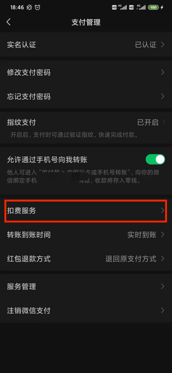 第四步,选中支付管理页面的“扣费服务”,进入扣费服务窗口;