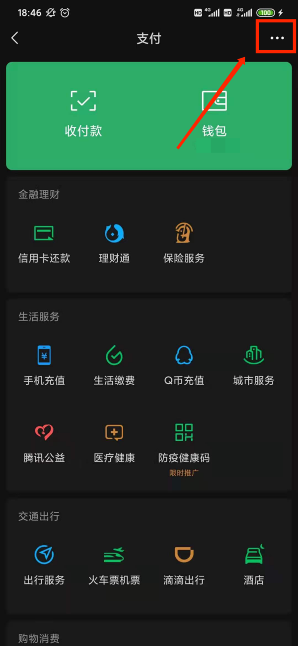 第三步,在支付页面的右上角有“···”图标,这就是打开支付管理页面的入口,点开此选项;