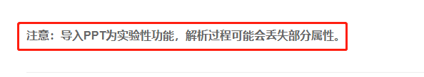 第四步:在此过程中软件将会弹出以下提示:导入PPT为实验性功能,解析过程可能会丢失部分属性。这是大家需要注意的,导入完成后需要检查一下PPT哦。