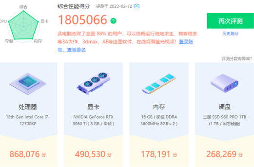 就当下而言,整体跑分达到15万以上已经算是高配游戏电脑了,但现在人的需求变化很快,说不准15万的跑分就会在几年内变成大众需求,人们会追求更高水准的电脑,小编前几天刷贴吧,就已经看到,有的网友自己电脑跑分已经达到180万,相当炸裂了。