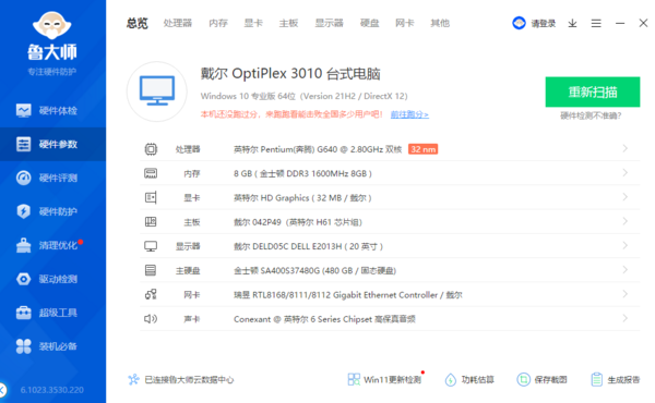 首先,打开鲁大师,点击左侧【硬件参数】,即可看到我们当前电脑的设备参数,小编根据实际情况对比发现,全部都是正确的,可见鲁大师的识别功能非常强大。