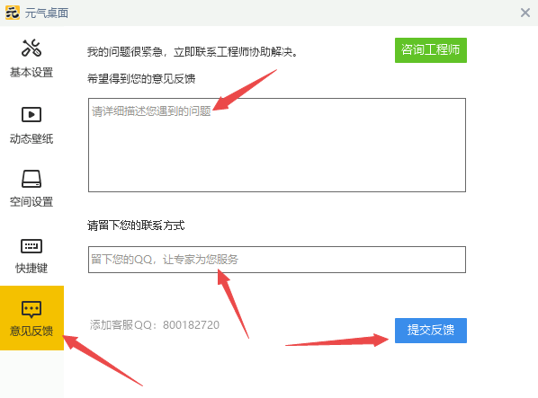 接着,在【意见反馈】窗口中,输入你遇到的问题,然后留下联系方式,最后点击【提交反馈】,然后等待专门的人员为我们解决问题即可。