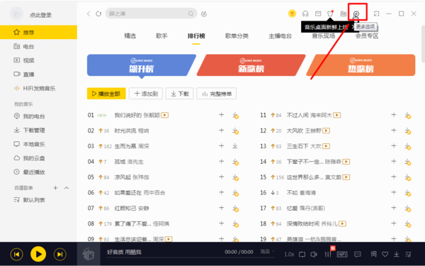 1、运行酷我音乐软件,进入主界面后点击右上方的【更多选项】;