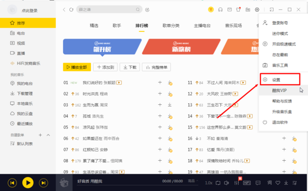 酷我音乐检查更新途径: