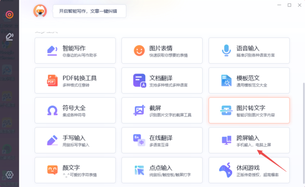 第二步,然后在弹出的窗口界面中,找到【跨屏输入】功能,点击它。