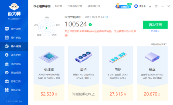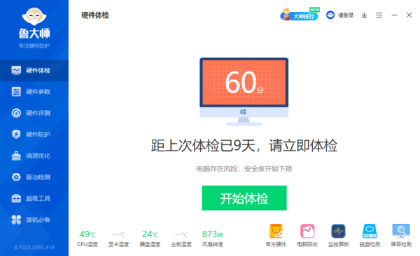 此时,在使用鲁大师给电脑跑分前,先监测一下系统硬件组件的健康状态,确保他们没有出现损坏或故障,然后再进行跑分,一般就可以解决问题了。