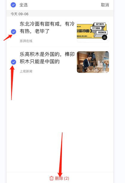 第四步:接下来在百度浏览器所浏览痕迹的前方能够看到选择框,点击能选择要删除的浏览痕迹,最后点击下放的删除即可。