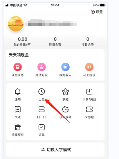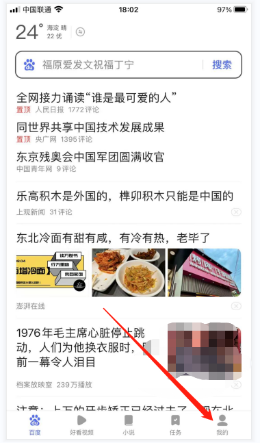 第一步:首先打开百度浏览器,进到界面后,点击我的。