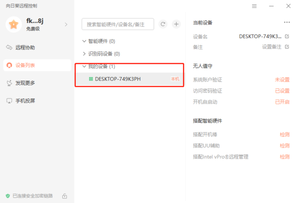 在向日葵远程控制完成设备的添加之后,我们可以在其中快速调节设备【无人值守】相关设定,以及快速的给设备搭配智能硬件,让远程控制更加方便、快捷、安全。