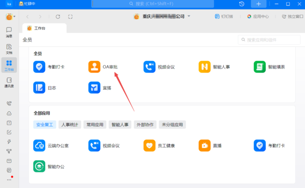 ③然后,在右侧的界面中,找到【OA审批】功能,并点击进入。