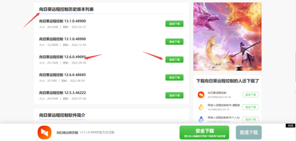 最后,在页面中,找到【向日葵远程控制历史版本列表】一栏,然后再找到想要下载的软件的旧版本号,然后点击其右侧的【直接下载】按钮进行下载即可。