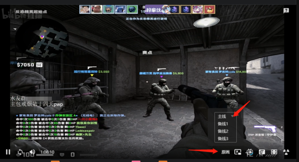 当我们在哔哩哔哩,打开直播后,如果发现视频一卡一卡的,那我们先将鼠标划到直播界面的【原画】,然后可以看到有画质和线路的调整;接着,我们再将鼠标划到【主线】,就可以看到还有若干“备线”,我们可以将主线切换到备线1、备线2、备线3,实现哔哩哔哩切换直播线路的操作,以解决看直播卡顿问题。