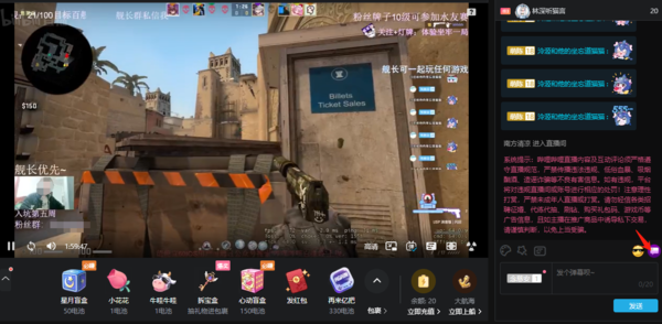 同样地,我们在哔哩哔哩直播界面,右侧互动栏中,可以看到表情右边有一个“聊天框”图标,点击它,就可以看到醒目留言界面了。
