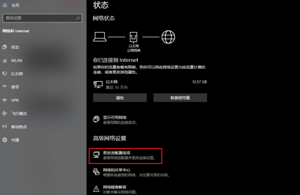 2、之后,在出现的界面中,我们选择【高级网络设置】下的【更改适配器选项】;