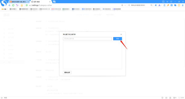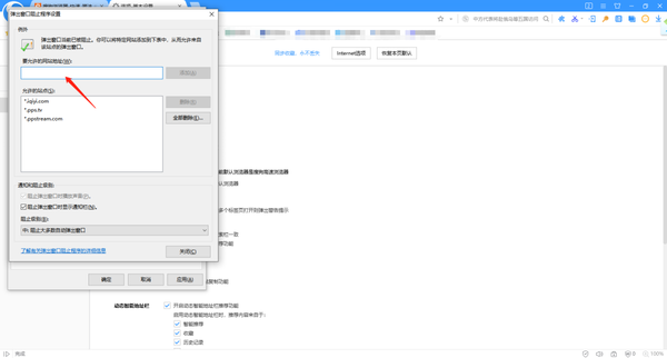 3、点击【设置】后,可以手动添加特定网站,从而允许来自该站点的弹出窗口。