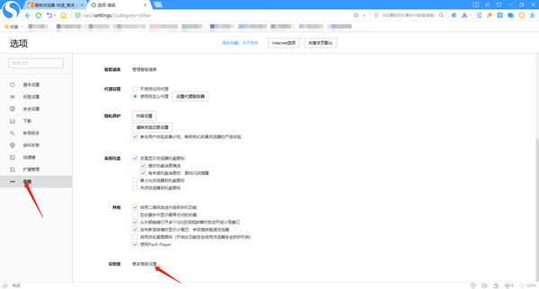 2、在【选项】界面,点击【高级】,找到【实验室】,点击【更多高级设置】。