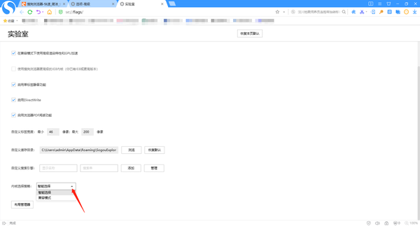 3、点击【内核选项策略】后的下拉菜单,将【智能选择】改为【兼容模式】,这样以后打开的所有网页都是以兼容模式打开了。但是高速模式加载网页速度快,占用资源相对较低,因此小编不建议大家修改成所有网页在兼容模式下打开。