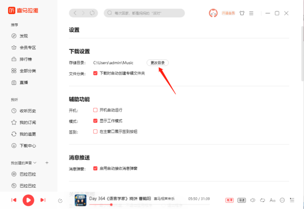 2、在【设置】界面找到【下载位置】,点击【更改目录】即可修改下载位置。