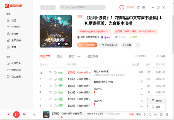大家在使用喜马拉雅听一些连载文章的时候,怎么才能及时关注到该专辑是否更新了呢。我们只需要订阅该专辑,这样当该专辑更新的时候可以快速收听,接下来小编就教大家怎么订阅专辑,以及怎么跳过片头片尾,感兴趣的朋友赶紧看下去吧。