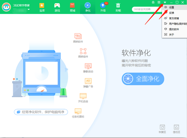很多朋友会在电脑上安装各种软件,但是很多软件存在弹窗、捆绑、静默启动等行为,为了保护电脑的安全以及运行速度,我们可以使用360软件管家检查安装软件是否存在问题以及帮助我们净化软件,同时我们开启纯净安装来帮我们自动拦截捆绑插件,接下来小编就教大家怎么开启软件净化功能以及纯净安装功能,感兴趣的朋友们一起看下去吧。