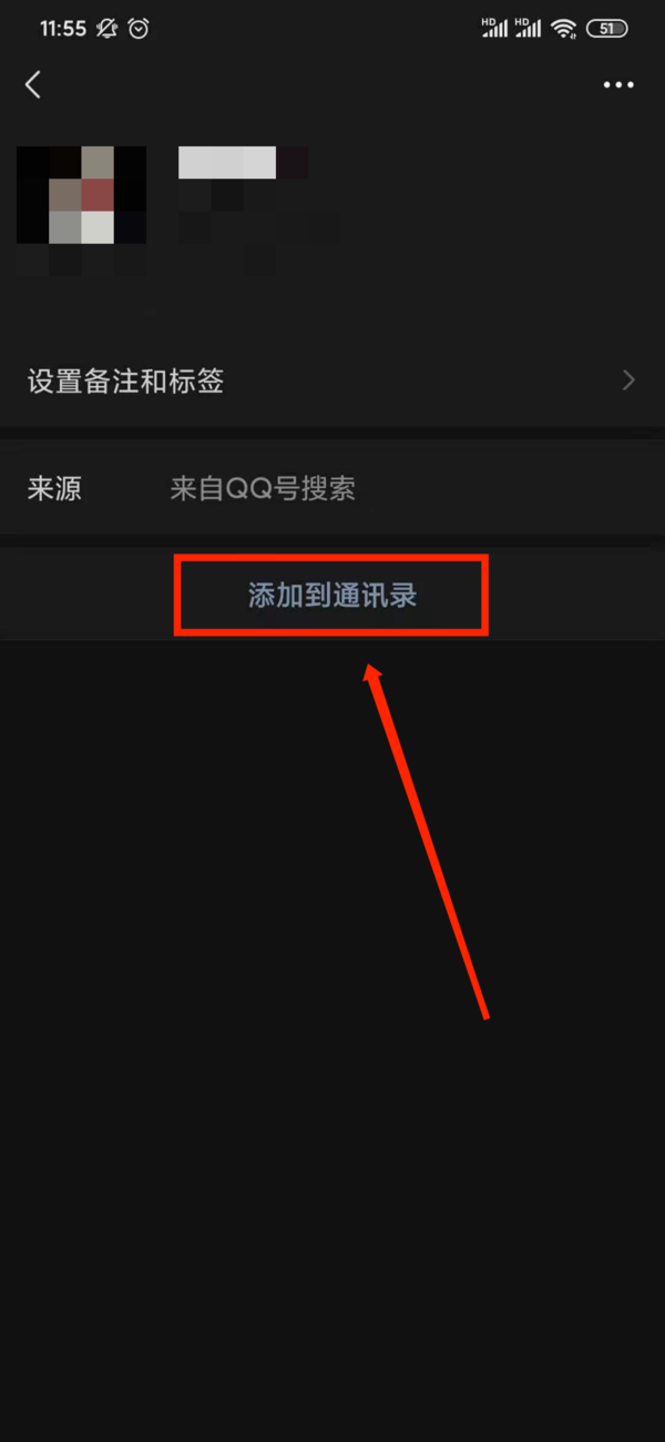 第四步,好友搜索出来后点击【添加到通讯录】即可。