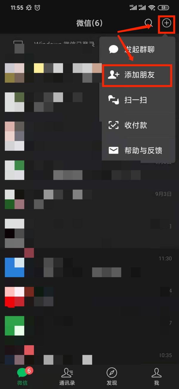 第二步,当菜单弹出后我们需要选择【添加朋友】;