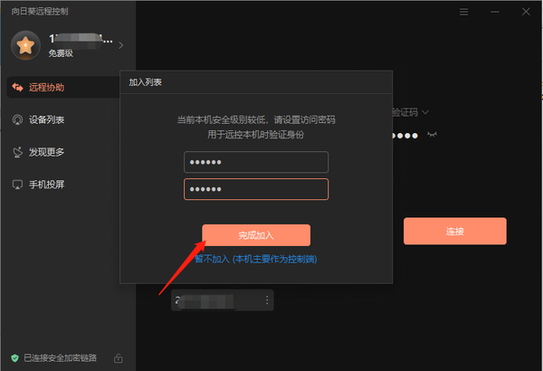 4、设置访问密码后,点击【完成加入】。