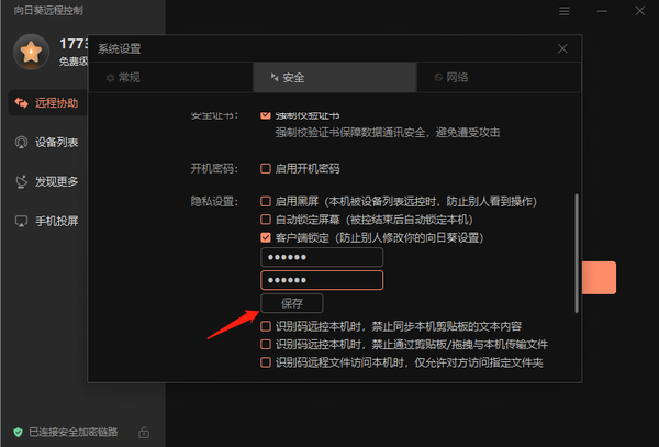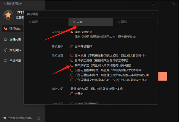 客户端锁定是向日葵安全设置中的一个选项,通过锁定客户端,可以防止在未知情况下被修改客户端设置。