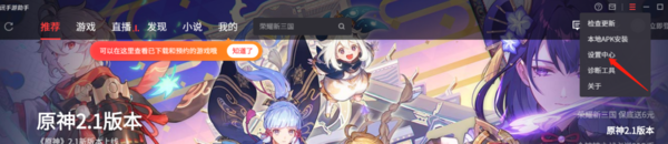 2.?在确定好配置不存在任何问题的情况下,使用腾讯手游助手依旧还是出现卡顿的话,那就是自己设置出现了问题,打开腾讯手游助手,点开右上角的菜单栏,然后选择设置中心。