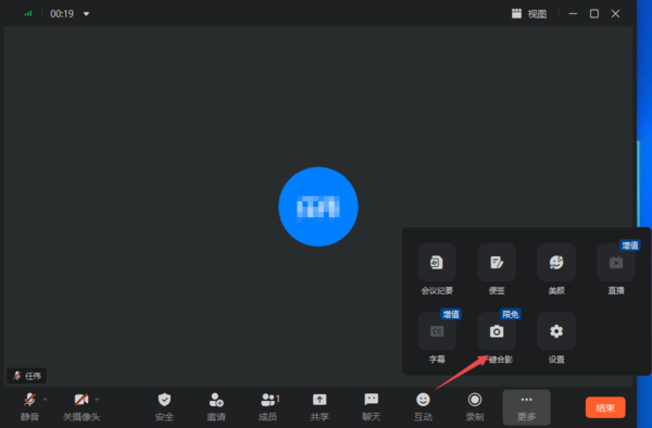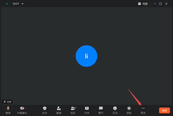 第三步,进入到视频会议的画面当中后,找到界面右下角的【更多】选项按钮,点击它。