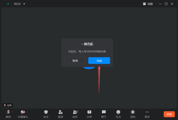第五步,软件会提示我们【发起后,每人有5秒时间准备合影】,然后点击【发起】按钮。
