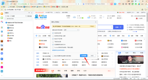 2、进入到【清除痕迹】界面中,直接勾选需要清理掉的内容,然后点击页面下方的【立即清除】按钮,重启浏览器即可。