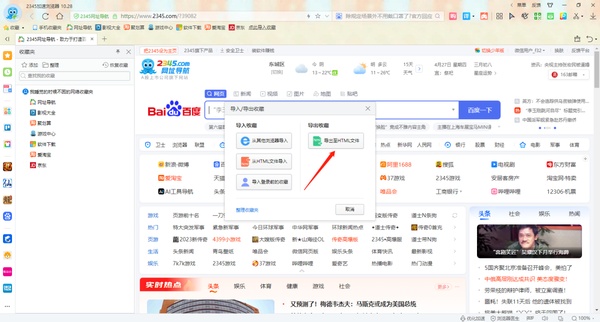 3、点击【导出收藏】下的【导出至HTML文件】,就可以将2345加速浏览器收藏内容导出。