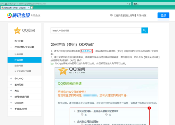 第五步,接着在界面的右侧,找到【如何注销(关闭)QQ空间】问题,然后点击它。