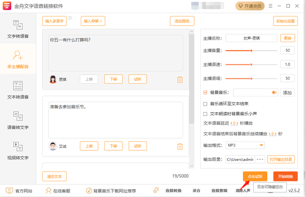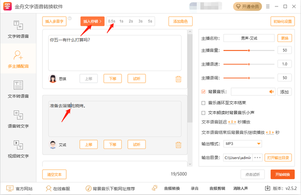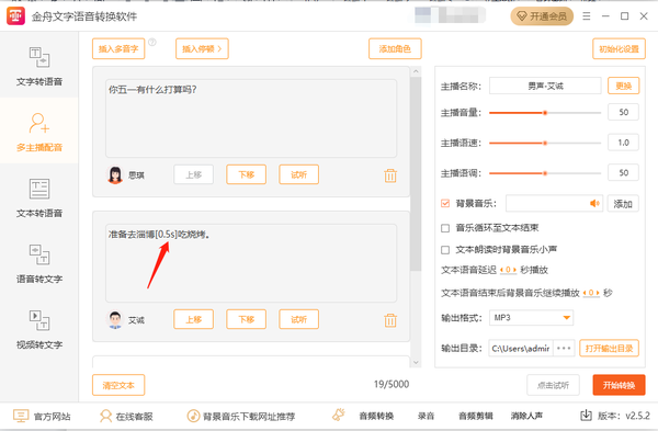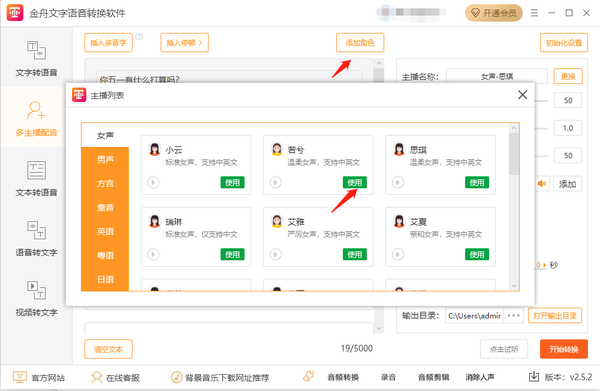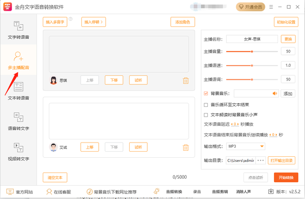 一些小伙伴表示不知道怎么使用金舟文字语音转换软件(原闪电文字语音转换软件)进行多主播配音的功能,接下来小编就来给大家介绍一下如何实现多主播配音,感兴趣的朋友赶紧看下去吧。