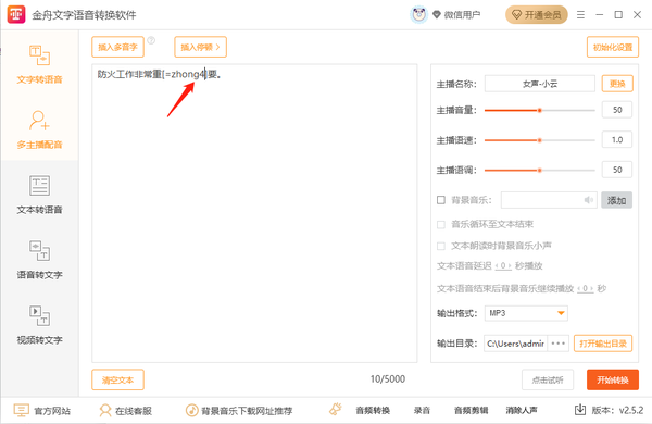 目前很多软件都有文字转语音的功能,但是遇到多音字的时候,很多软件并不能进行正确的处理,读出来的内容还需要我们进一步的处理。接下来小编就教大家怎么用金舟文字语音转换软件(原闪电文字语音转换软件)正确的转换多音字。