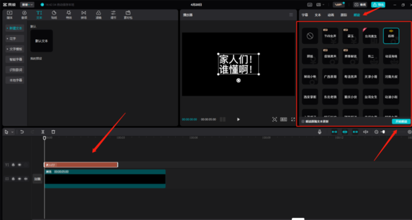 除了主动制作人声朗读的字幕之外,我们还可以将一段素材中的人声识别,然后生成字幕内容。